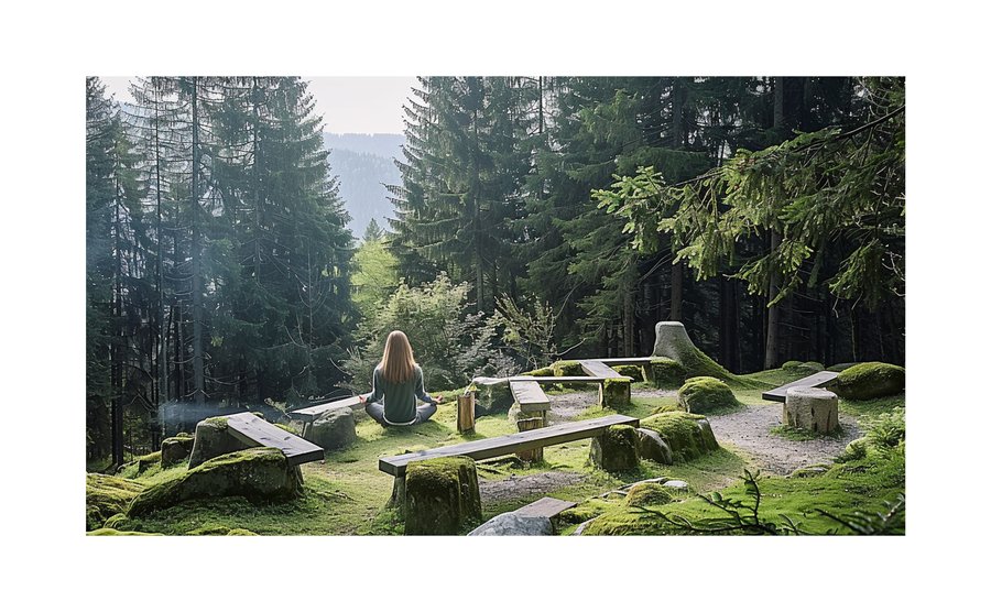За основу релакс-пространства было взято фото парка, где медитируют люди.