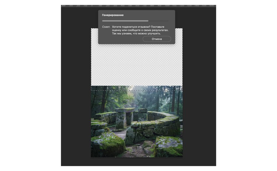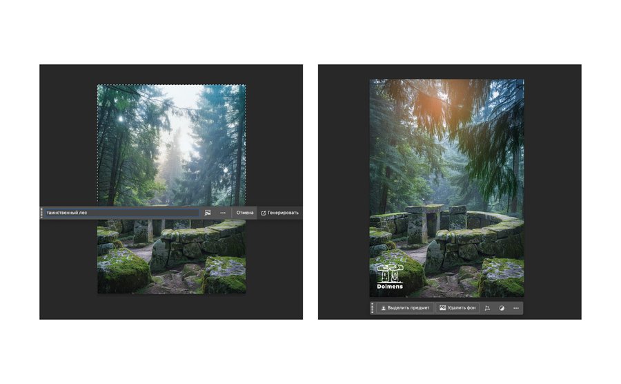 Обложка была разработана на основе ранее сгенерированных изображений и логотипа, а также с использованием генеративной генерации в Photoshop. Это позволило увеличить изображение и добавить ему глубины за счет созданной части.