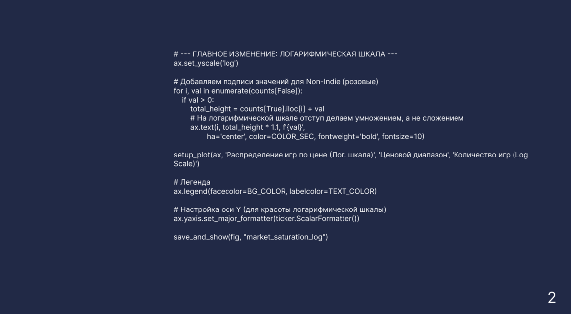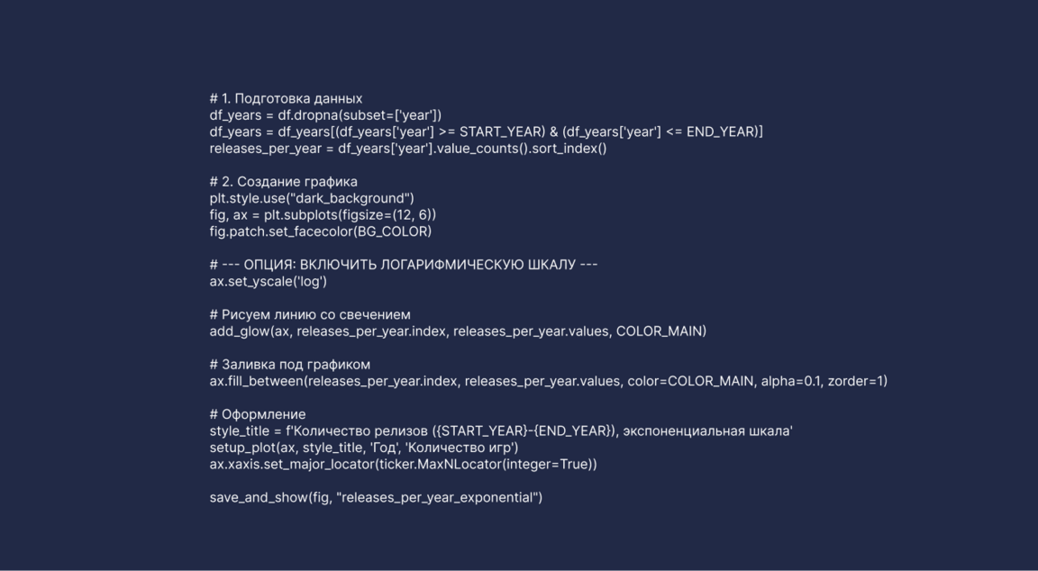 График демонстрирует классический экспоненциальный рост индустрии, вызванный сменой политики Steam. До 2012 года Valve отбирала проекты вручную, что сдерживало развитие рынка, однако запуск систем Greenlight и Direct в 2013–2014 годах полностью снял эти барьеры. Упрощение публикации привело к «взрыву» контента: сегодня за один год выходит больше игр, чем за всё первое десятилетие работы платформы. Из-за такой колоссальной динамики данные удобнее отображать на логарифмической шкале — линейный характер графика в этом формате математически подтверждает гипотезу об экспоненциальном взрыве количества выпущенных игр.