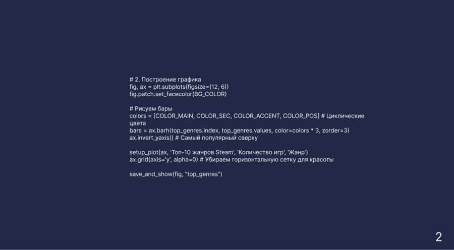 Выбор цветовой палитры обусловлен спецификой предметной области и требованиями к визуализации данных. В основу легла эстетика киберпанка и ретровейва, что создает прямую ассоциативную связь с гейм-индустрией, цифровыми технологиями и платформой Steam. Выбранная палитра цветов не только подчеркивает современность и креативный характер индустрии, но и повышает читаемость сложных аналитических данных.