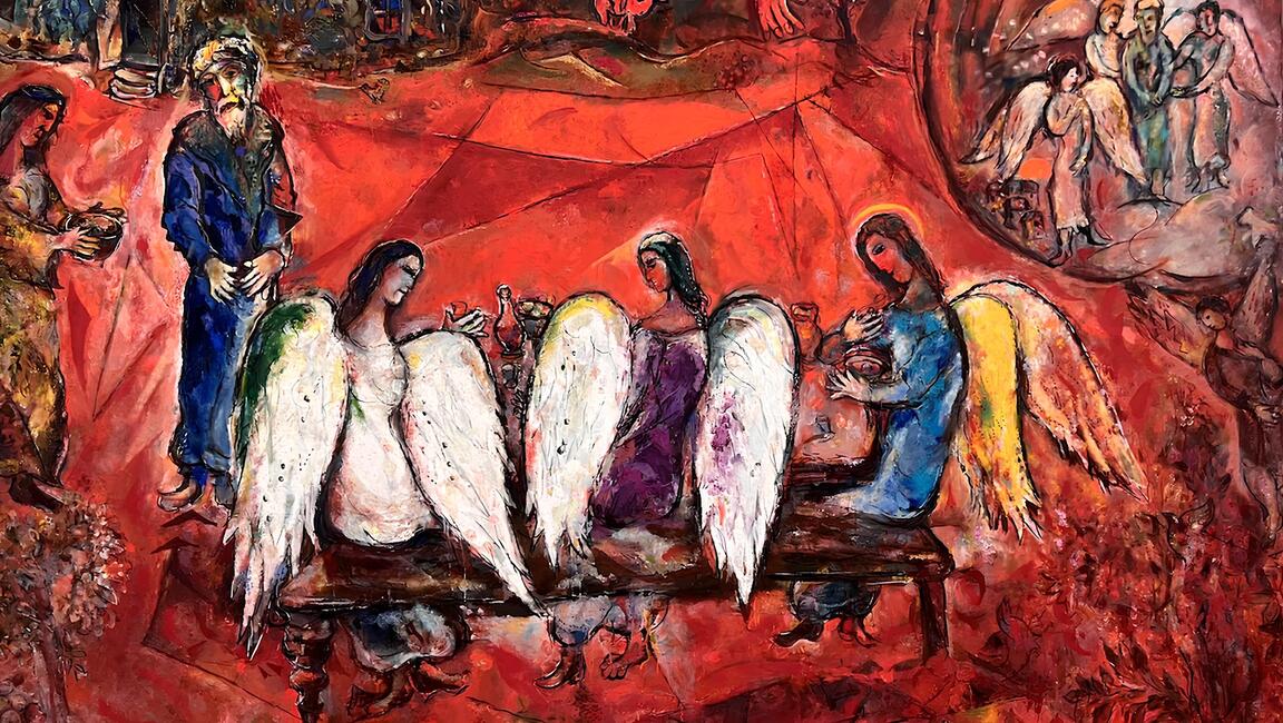 Marc Chagall — «The struggle of Jacob and the Angel» (detail), 1960 — 1966 / «Abraham and three angels», 1966 / «Adam and Eve expelled from Paradise», 1961