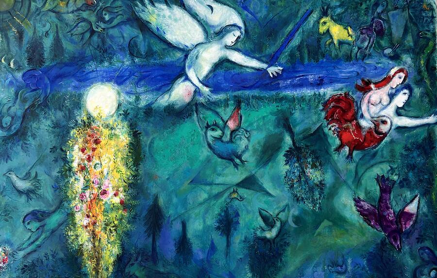 Шагал, обращаясь к самым глубоким основам как личной жизни, так и жизни человека, сплетает все воедино, достигая уникальной целостности восприятия мира и человека.