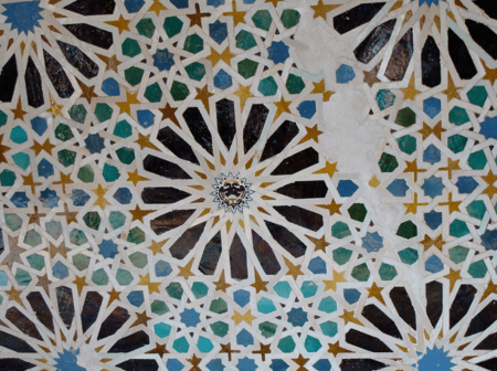 Сложные геометрические узоры были позаимствованы из Сасанидской Персии (Иран).