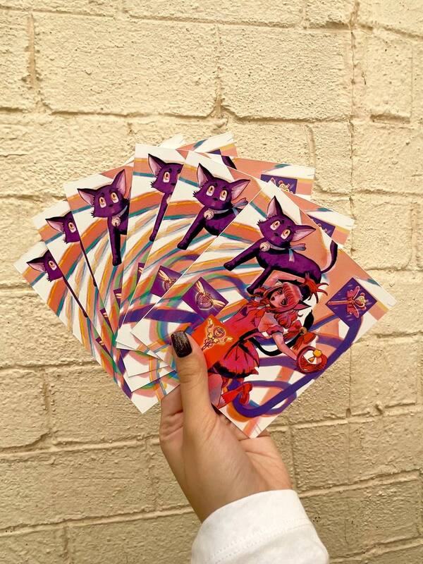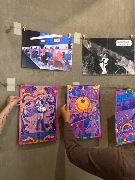 Я принимала участие в фестивале как художник и как автор мерча вместе с объединением «Клубок». В качестве мерча я представила плакаты, открытки и стикерпаки с героинями из популярных произведений жанра «махо-сёдзё».