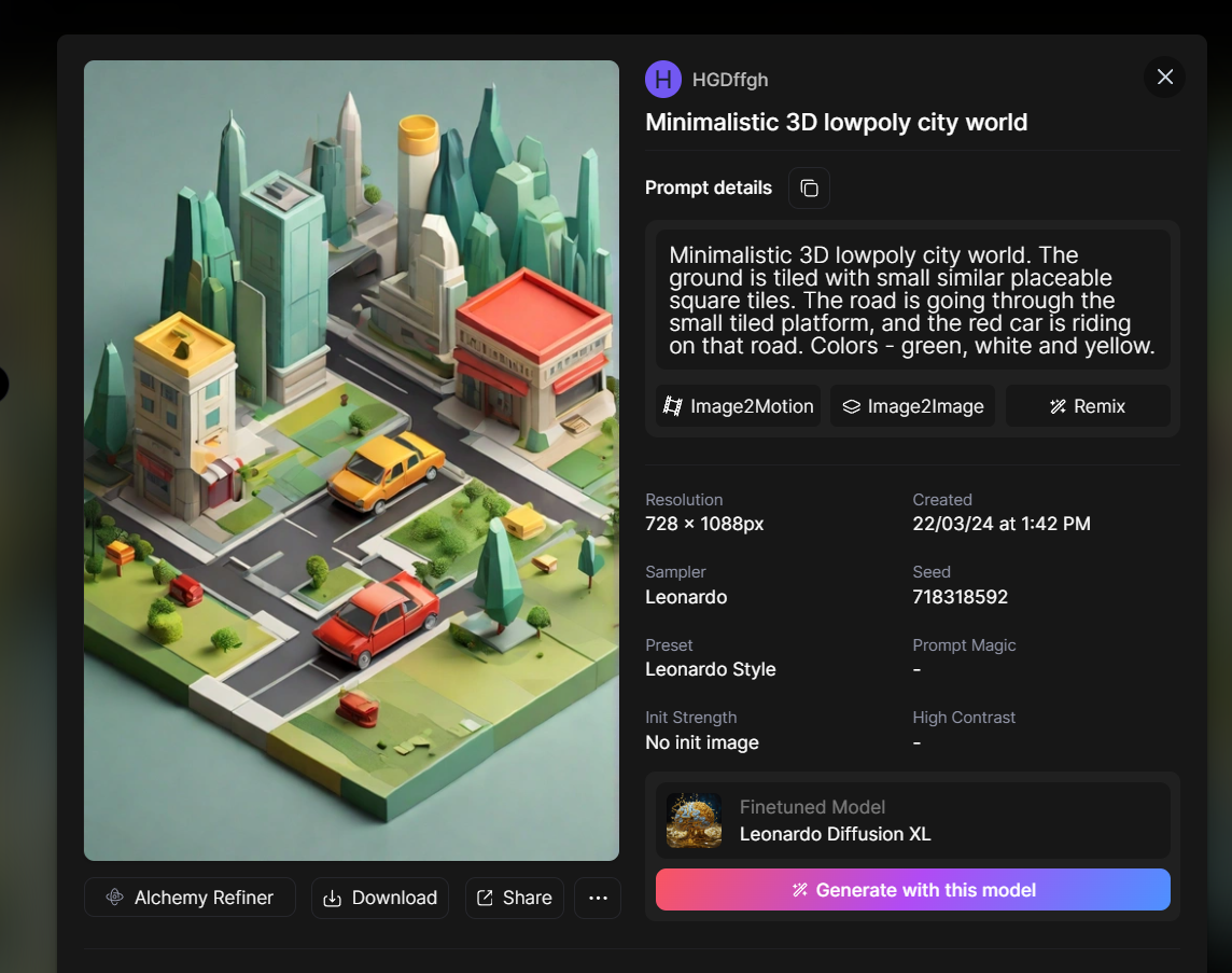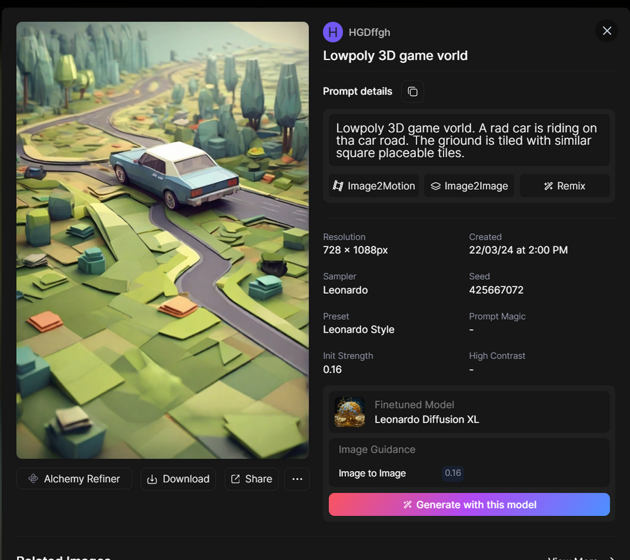 Для моделей машины (Игровое поле и элементы — генерация): Red car, 3D lowpoly model, orthograpfic view.