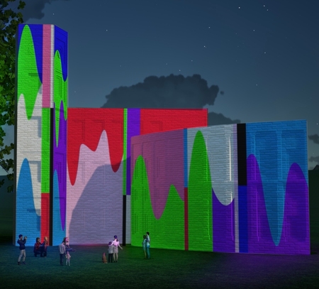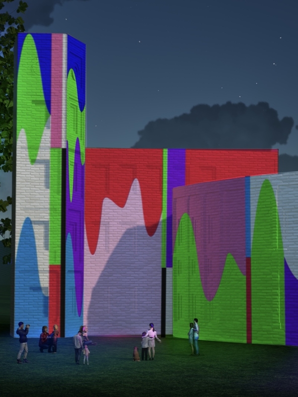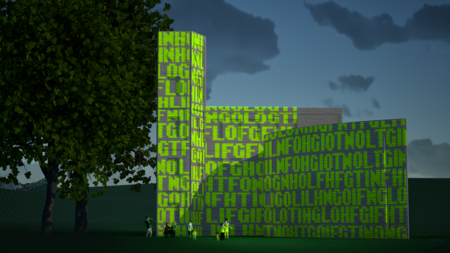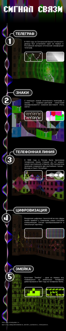 Во второй части мепинга зашифровывается название фестиваля «Ночь света» знаками оптического телеграфа, применив графемо-цветовую синестезию.