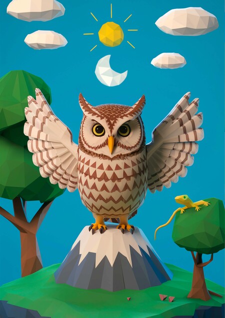 Также я задала Midjourney такой промпт: Коврик для мыши, на нем изображена сова в желто-коричневой раскраске, изображены полная луна и полумесяцы.