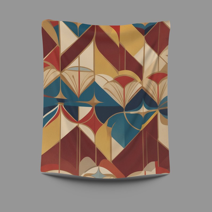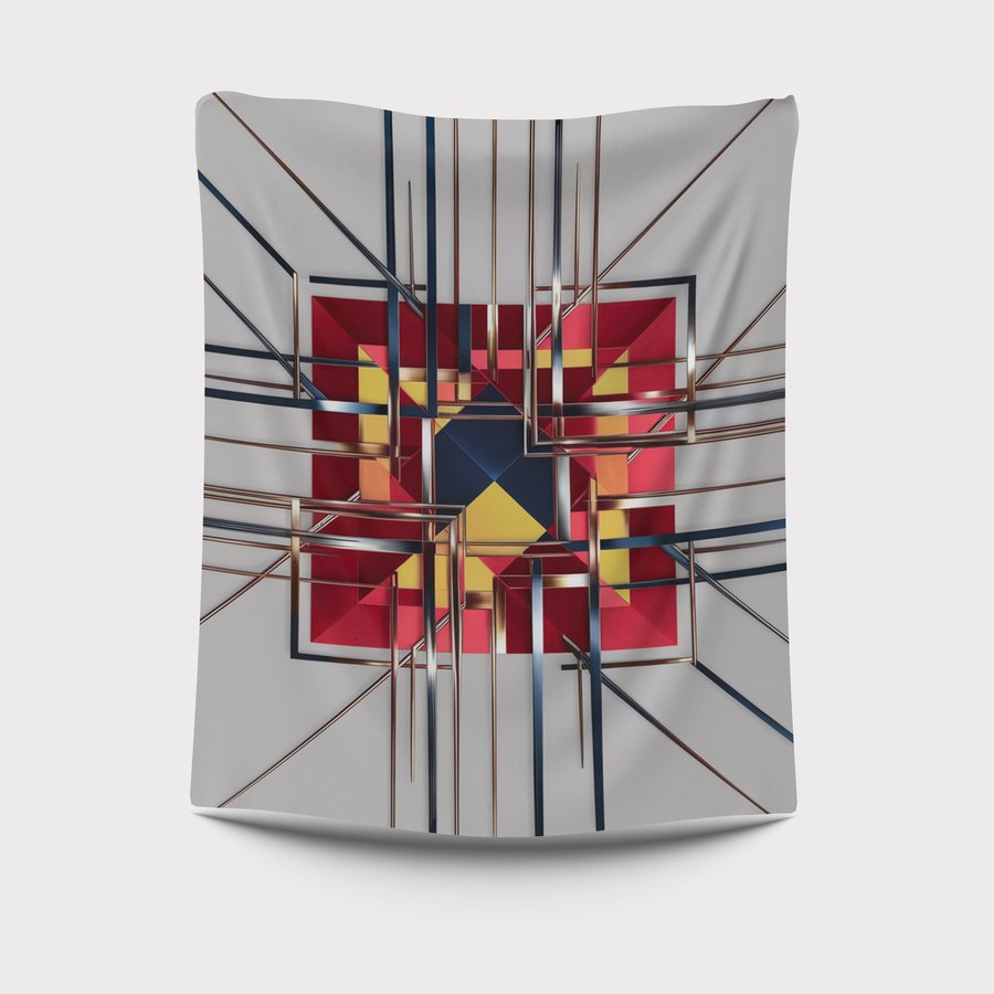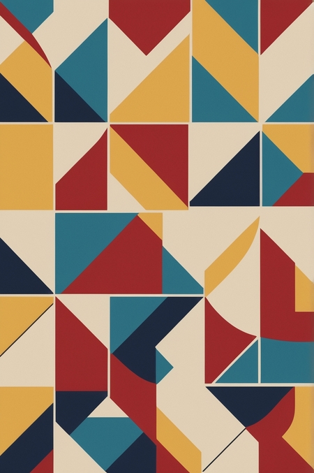 The pattern is represented by a square sweep. A minimalist display of pattern designed for the Congress of Chefs event. The pattern for an abstract, geometric design with a harmonious blend of colors, including vibrant reds, blues, and yellows. pattern are all unified by their clean, sleek lines and modern aesthetic.