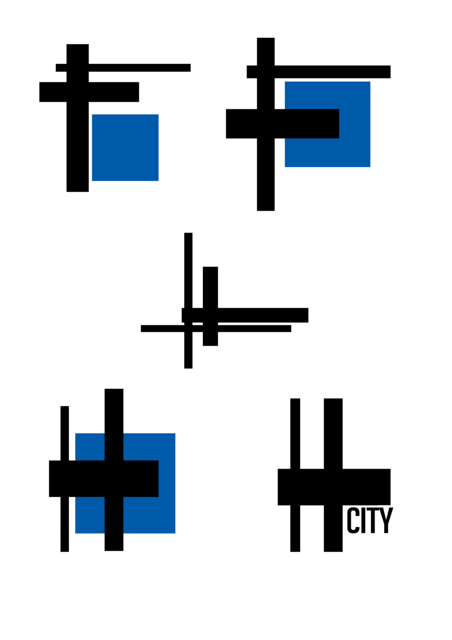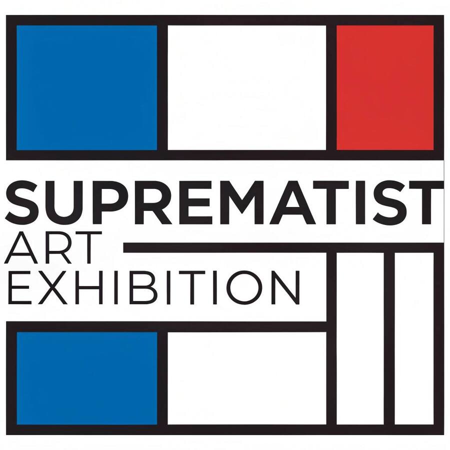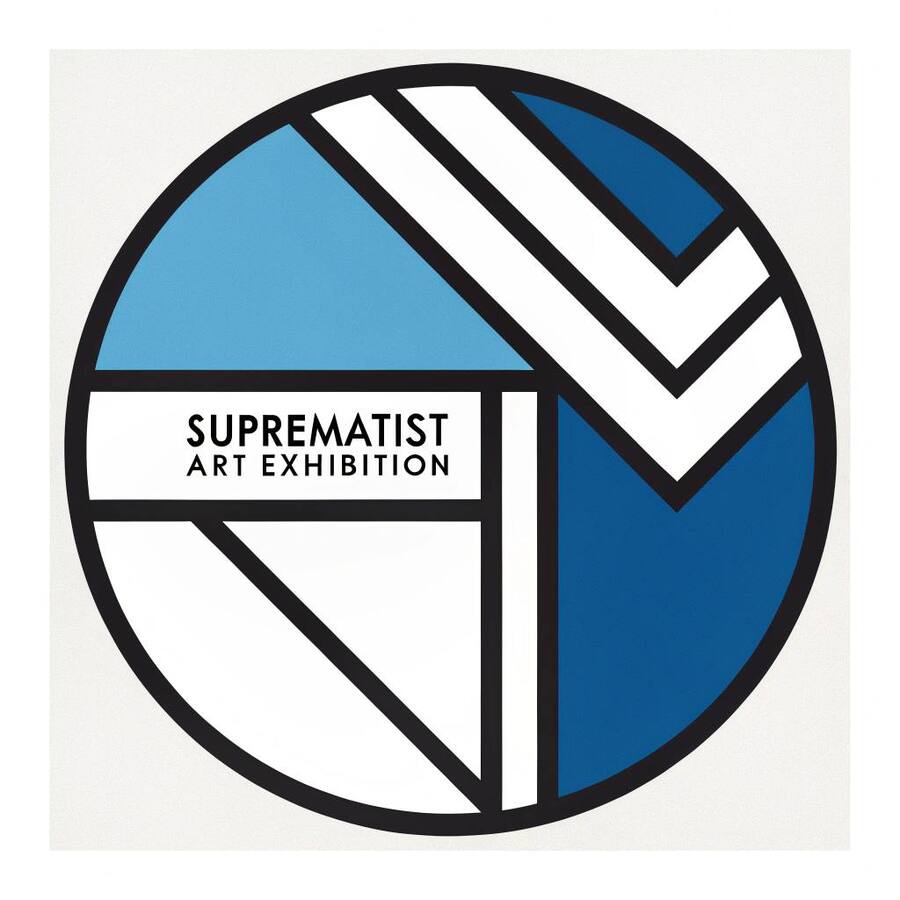 imagine prompt: create a logo for the exhibition of supremacist artists in blue, white and black