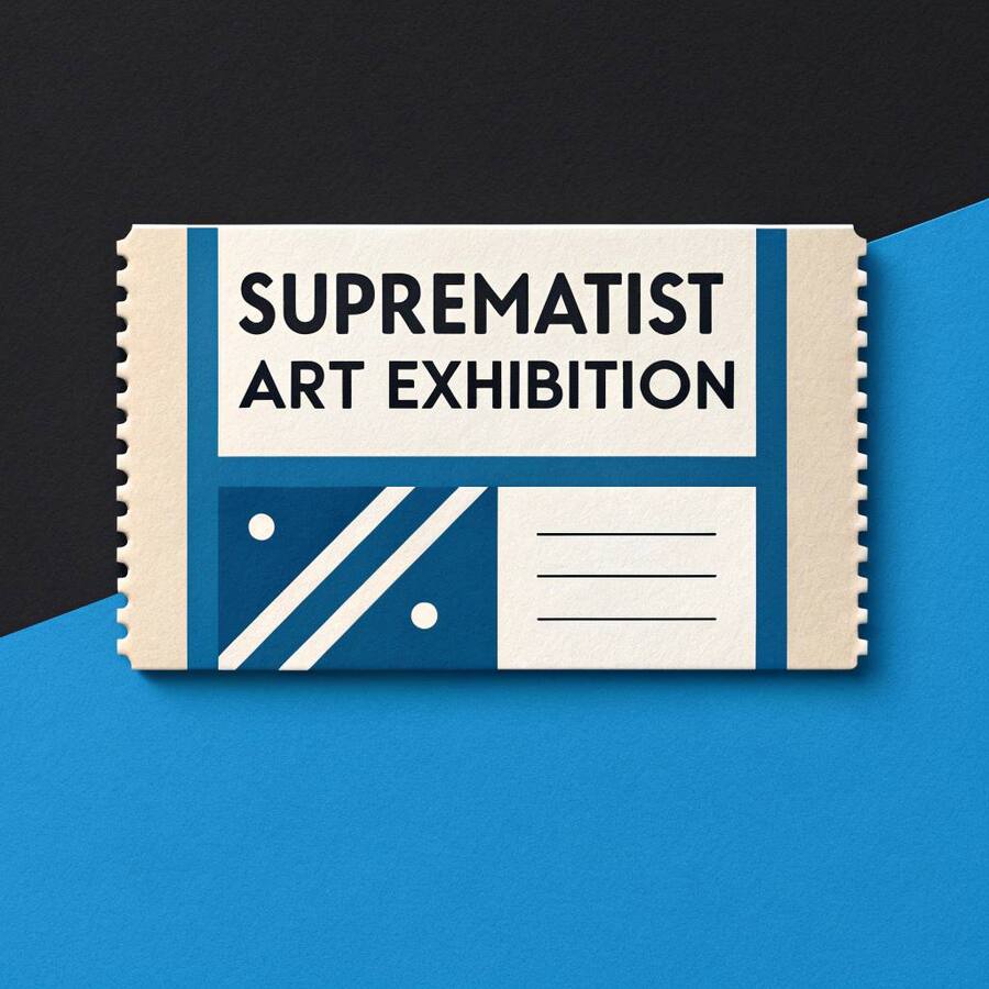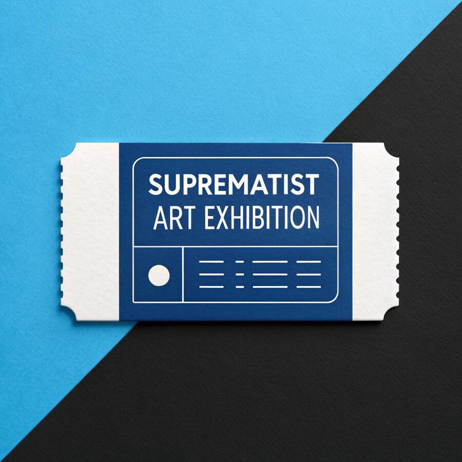 imagine prompt: create a ticket for the exhibition of supremacist artists in blue, white and black