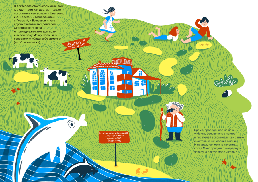 Лонгрид позволит зрителю посетить дачу Волошина в Коктебеле. В этом доме Макс бесплатно сдавал комнаты творческим людям. Единственным условием являлось «радостное приятие жизни, любовь к людям и внесение своей доли интеллектуальной жизни». Мы увидим столовую, библиотеку и мастерскую Макса.