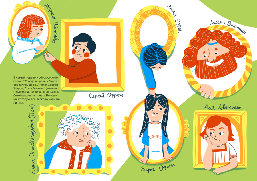 Мы переместимся в первое «обормотское» лето 1911 года. В Париже Макс познакомился с недавно осиротевшими Верой, Лилей и Сережей Эфрон. Видя горе подростков, Волошин пригласил их к себе на дачу в Коктебель. Туда же вскоре приехали Ася и Марина Цветаевы. Пра — мать Волошина — встала во главе этого новообразовавшегося семейства.