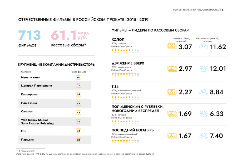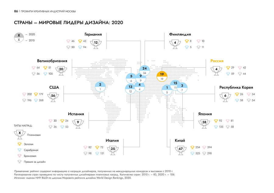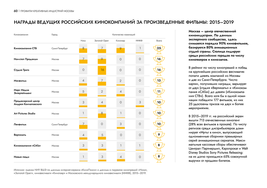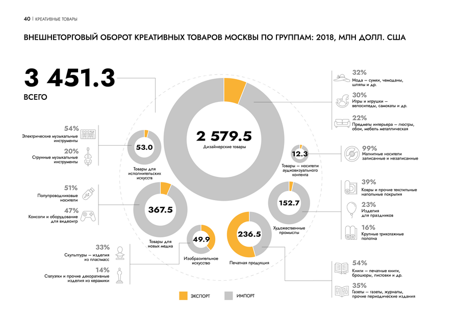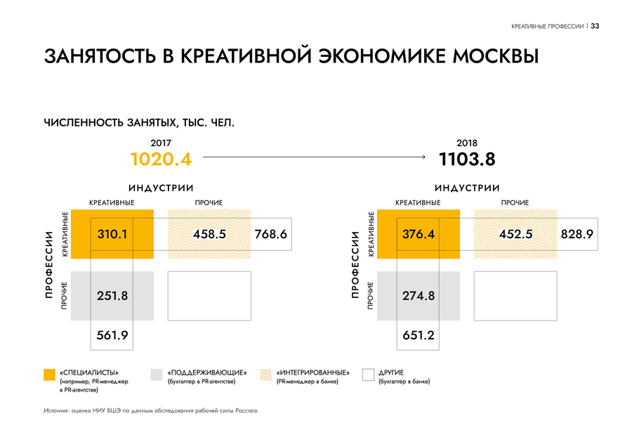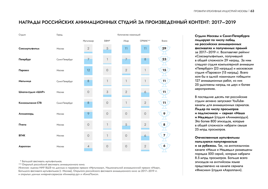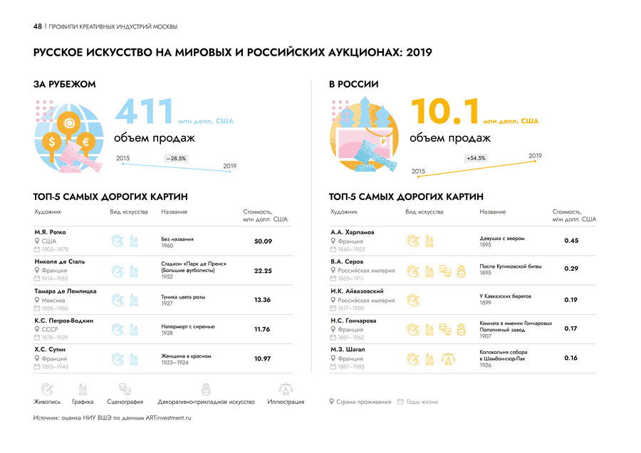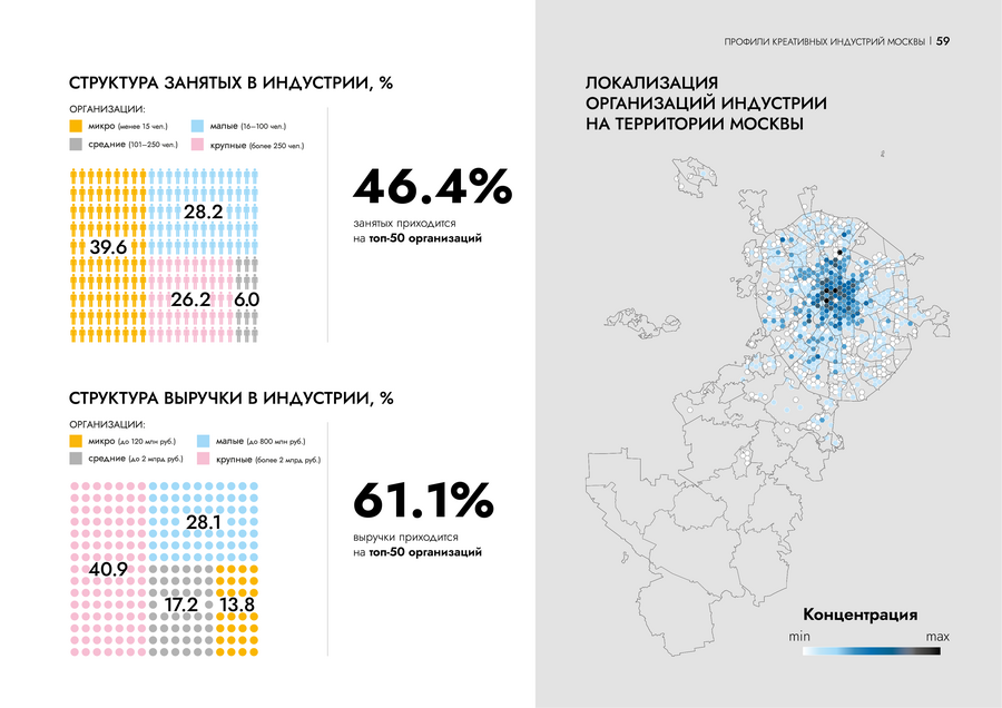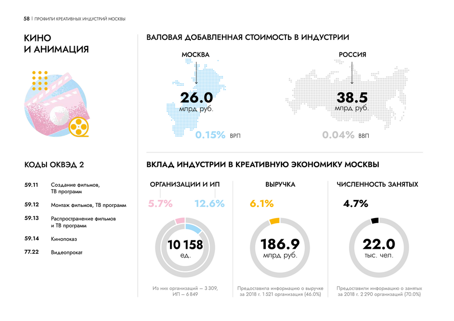 На страницах профиля креативной индустрии инфографика помогает сравнить данные между собой и погружает читателя в контекст. Пользователю проще проанализировать ситуацию на рынке.