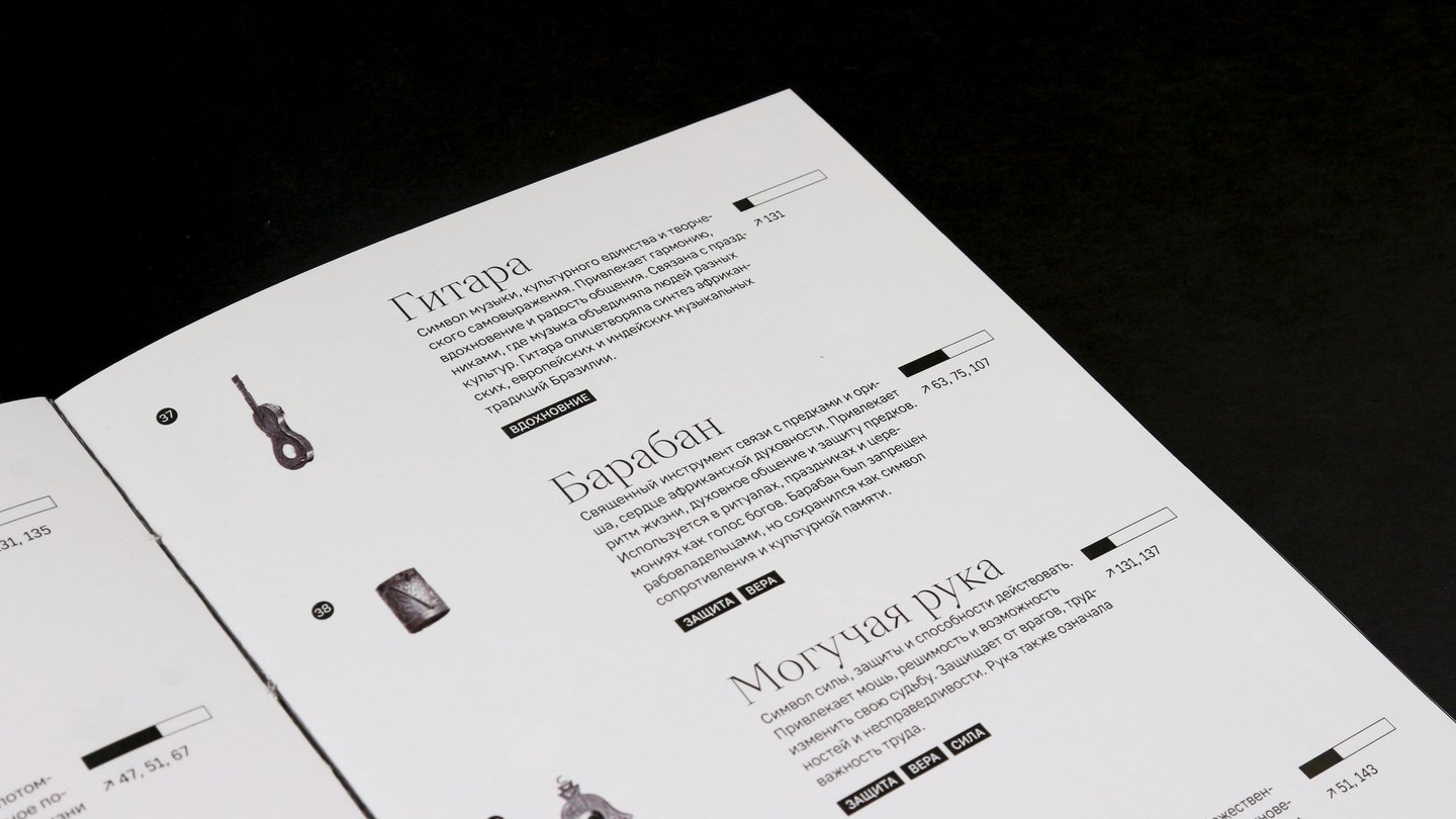 Принцип построения статистики, компоновки фотографий и текстов визуально повторяет устройство и пропорции балангандана.