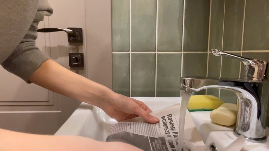 В это неспокойное время люди часто испытывают тревогу из-за новостей. Чтобы избавить себя от нагнетающих мыслей, я предлагаю купить газету и смыть с неё пугающие заголовки. Сам процесс поможет успокоиться и освободиться.