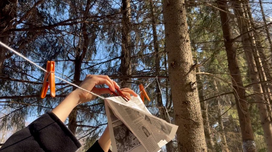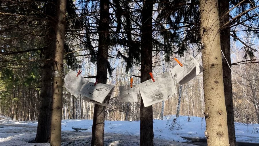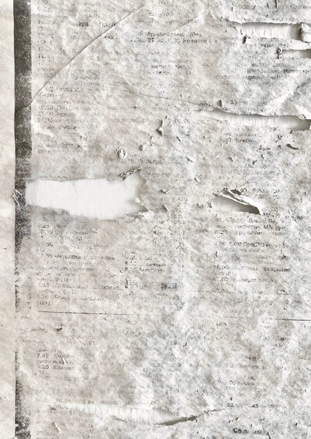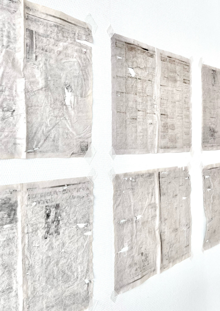 Проект состоит из видеодокументации и шести объектов — постиранных газет, очищенных от текста, но сохранивших бумагу.
