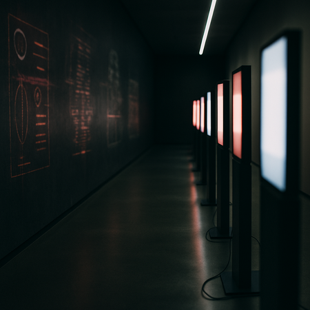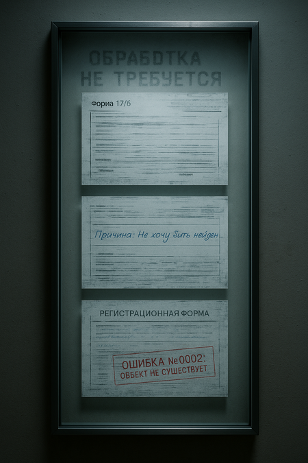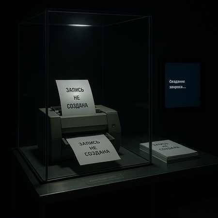 There are interfaces in this room that have stopped answering. Loading errors, hanging windows, automatic answers that don’t make any sense. The documents aren’t open, the bases aren’t looking, the routers aren’t moving. It’s a place where the system was supposed to find, respond, help — but it didn’t. Everything here seems familiar: menus, buttons, entry fields, but they lead nowhere. On the screens is what’s left of the malfunction. It’s not just a technical refusal, it’s a refusal to admit. Failure to record. Refusal to return it. The system retains its external shape, but no longer works. For no one.