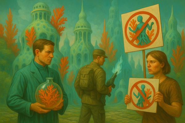 Международный трибунал по биоэтике обсуждает вопросы: где грань между лечением и оружием? Имеют ли города‑организмы права? Разрабатываются новые нормы обращения с живыми технологиями.