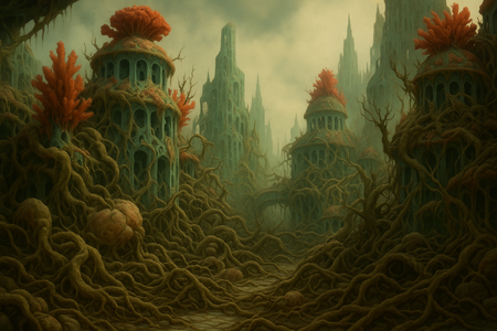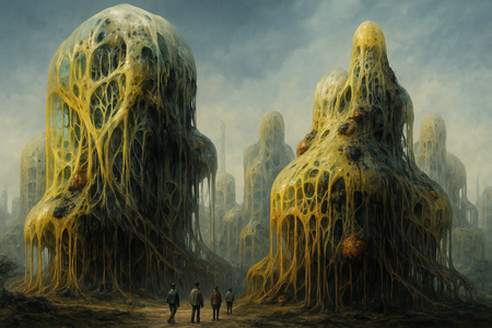 Энзимный туман: Коалиция выпускает контрабандные биодроны, распыляющие облако ферментов‑разрушителей над приграничным биотех‑городом. Ферменты разрушают биополимеры в фасадах, и живые дома начинают «кровоточить» соком; кварталы оседают, жители эвакуируются.