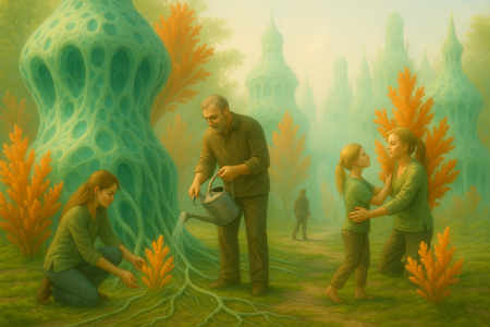 В утреннем свете бухта Нового Эдема сияла мягкой биолюминесценцией — город включал ночное освещение, снижая нагрузку на турбины. К полудню заведующий кварталом заметил на диагностическом панно «слабое воспаление» фасада: ферментные маркеры поползли вверх. В мире био‑архитектуры любой сбой — это симптом, и врачи‑инженеры ищут не пробитую трубу, а не того симбионта в тканях. Такой мир и будет «воевать» иначе.