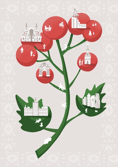 Иваново — лён. Льняное семя и само волокно — основа богатства края. Москва — калина. Поэтичный символ столицы, отсылающий к народной песне.