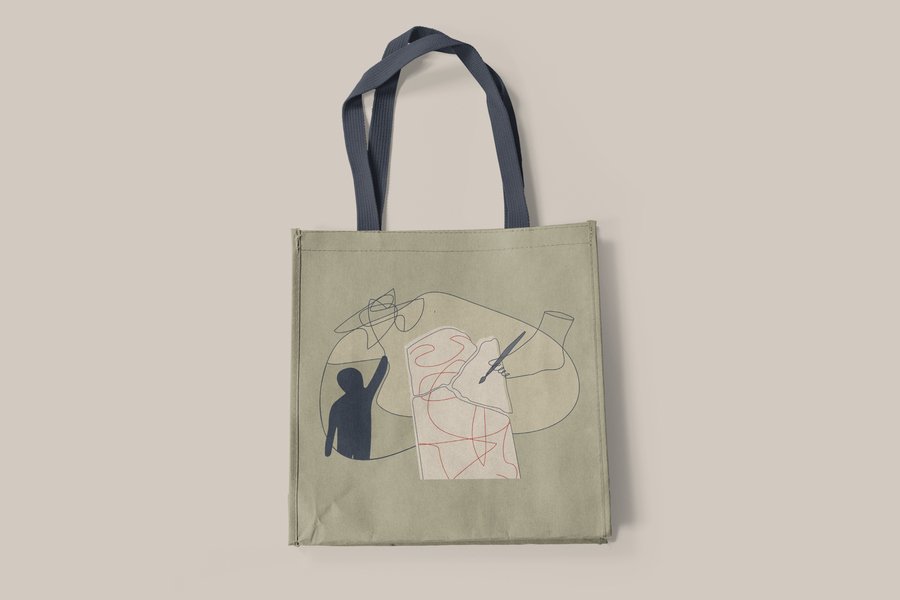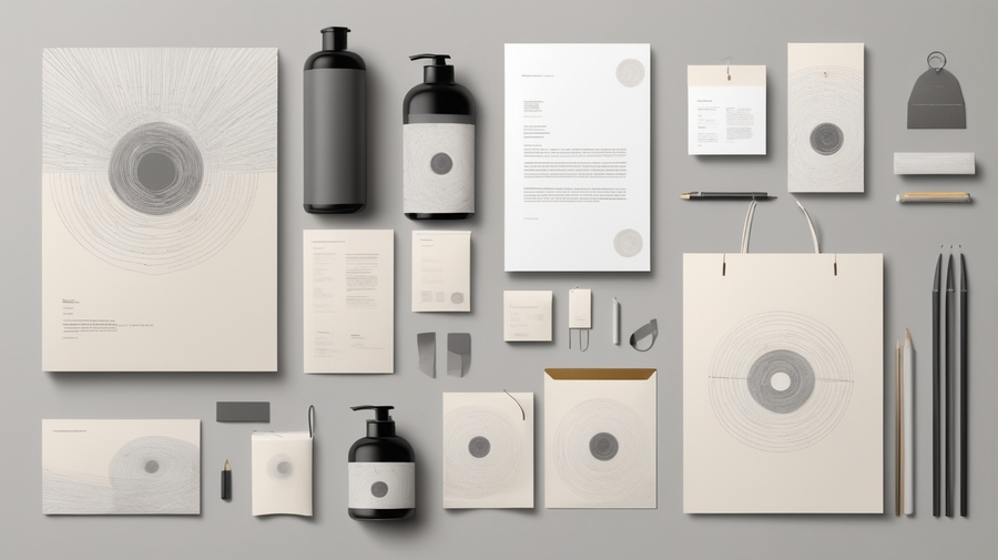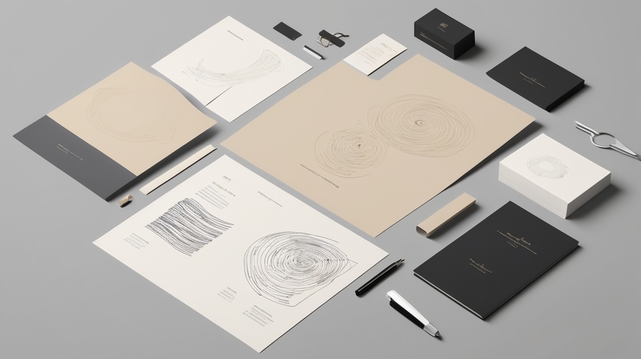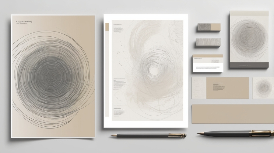 Develop a corporate identity for the Cy Twombly Cryptography Center. The element should be in the form of lines as from the artist’s paintings. Use the following colors to generate: #BFAF9B, #D9D4D0, #595451, #F2ECE9, #0D0000, gray/beige/milky/dark gray. The corporate identity should reflect the idea of information encryption. The media should be a notebook / scotch tape / bag inspired by the work of Cy Twombly