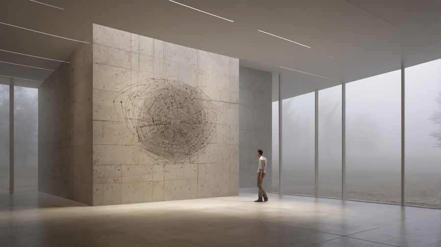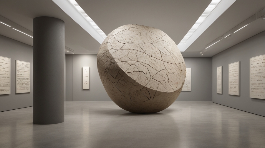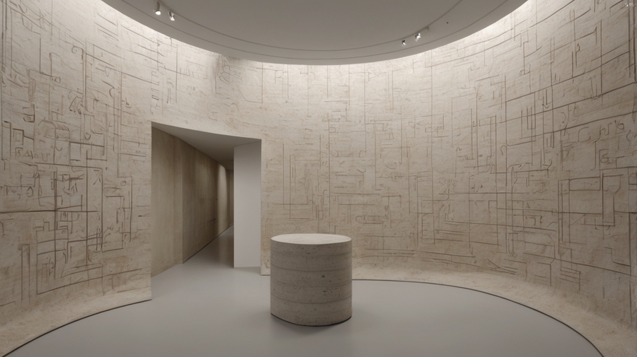 Make a visualization for the Cy Twombly Cryptography Center using the following notation for generation: #BFAF9B, #D9D4D0, #595451, #F2ECE9, #0D0000 gray/beige/milky/temporary gray.
