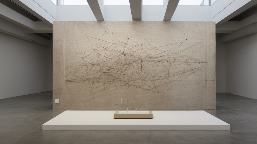 Make promotional posters for the Cy Twombly Cryptography Center using the following designations for generation gray/beige/milky/temporary gray. The elements should be based on a line, as in the paintings of Cy Twombly. advertising posters should be on a stone wall in the space of the city.