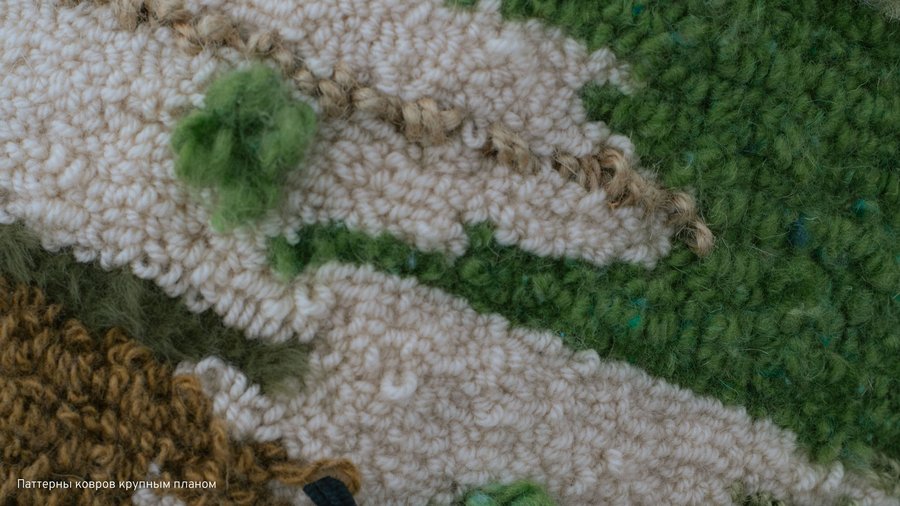 Переплет у лукбука сделан вручную с использованием той же пряжи, из которой создаются ковры. Процесс ручного переплёта отражает приверженность бренда искусству ручной работы и осознанности, делая каждую деталь частью общего впечатления.