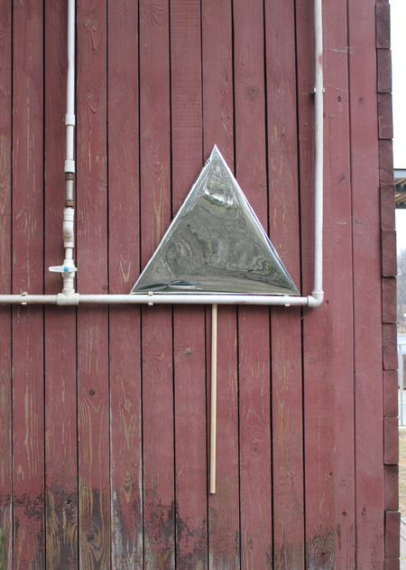 В рамках творческой лаборатории Франциско Инфанте я открыла новый для себя медиум — фотографию. Я осваивала метод помещения артефакта в городскую и природную среду. Для этого я сделала зеркальный квадрат и треугольный знак, прозрачный текстурный треугольник и структуру из картонных синих прямоугольников, натянутые леской на подрамник. Я снимала в разных локациях и ракурсах. В процессе съемки я подмечала случаи, когда артефакт идеально вписывался в подземные переходы, архитектурные формы, элементы ландшафтного дизайна, городской и природной среды, искажая и деконструируя пространство.