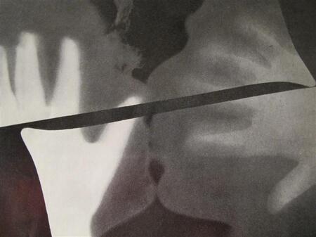 В одной из версий кадрирования снимка «Поцелуй» мы видим поцелуй абсолютно лишенных человеческих эмоций лиц. В другой — губы становятся основным элементом композиции, размываясь до замысловатого силуэта. Эта же логика ухода от реальности к причудливым образам проявляется в рентгенографии — фирменной технике фотографа — с таким же названием.