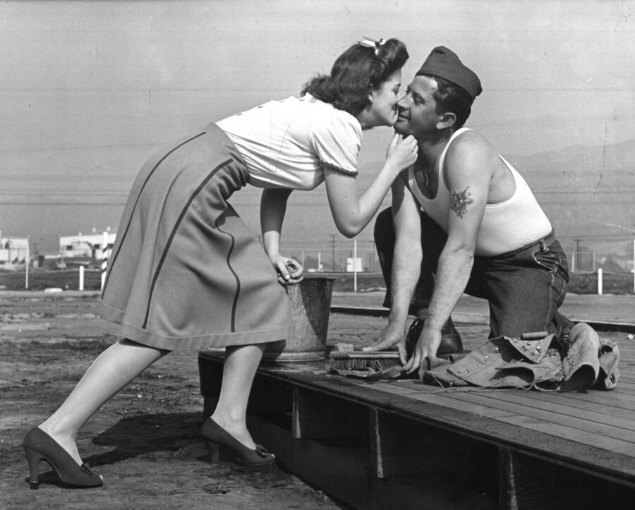 Самый известный из подобных снимков — фотография Альфреда Айзенштадта 1945 года, где радостный американский моряк сжимает медсестру в страстном поцелуе, в то время как тысячи людей заполняют Таймс-сквер, чтобы отпраздновать долгожданную победу над Японией.