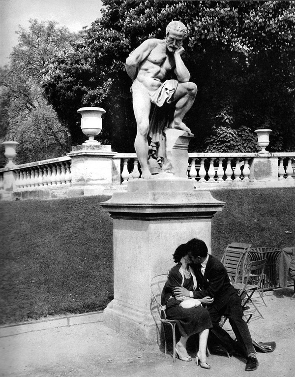 Иное наблюдение о начале века можно сделать из снимков великого фотографа Андре Кертеша. Данные кадры из начала его творческого пути — не содержат экспериментов с формой и композицией (в отличие от кадра слева), однако на их примере можно увидеть, как фотограф становится безмолвным свидетелем реальности — наблюдает и создает ее. Поцелуй на них — момент, в первую очередь, трогательный.