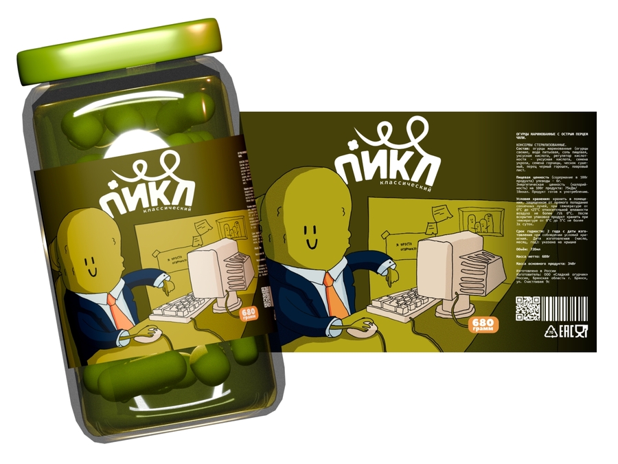 «Пикл» — это бренд-переосмысление всеми любимых бабушкиных консервов, которые зачастую появляются только на праздничном столе. Весёлый огурчик в разных амплуа демонстрирует независимость овощей от места, ситуации, времени, возраста и вкуса.