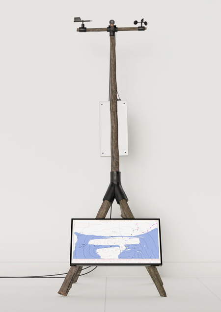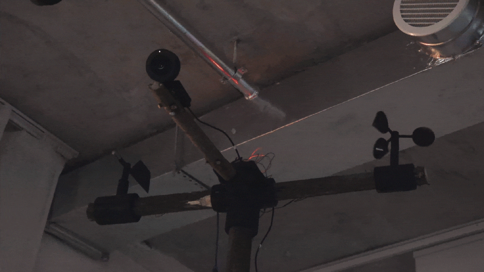 Количество людей в галерее влияет и на скорость движения моторов в метеостанции — из видеосигнала извлекается степень заполненности галереи, что преобразуется в данные для системы Arduino, управляющей анемометром и флюгером в верхней части конструкции