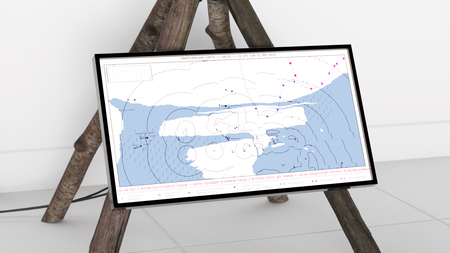 Работа представляет собой автономную метеостанцию, преобразующую видеосигнал в набор реактивных метеопоказателей на синоптической карте галереи