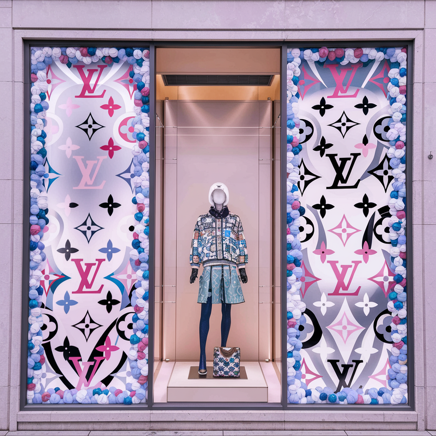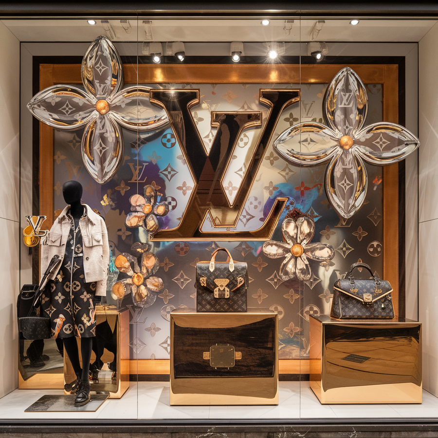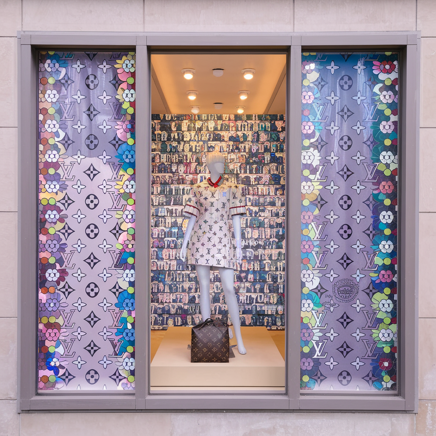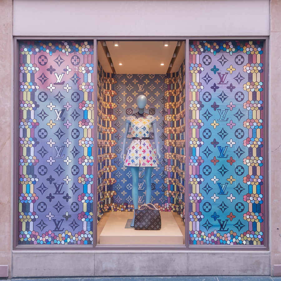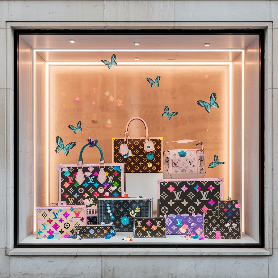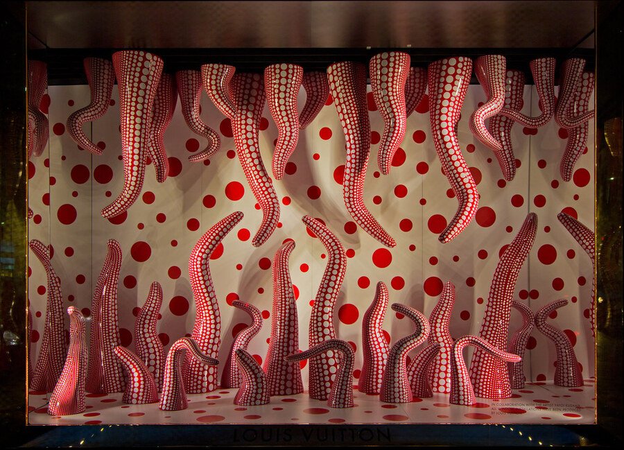 Витрины часто становятся площадкой для художественных инсталляций и коллабораций с известными дизайнерами и художниками. Например, в 2012 году бренд сотрудничал с японской художницей Яёи Кусамой, чьи узнаваемые узоры в горошек украсили витрины и коллекции Louis Vuitton.