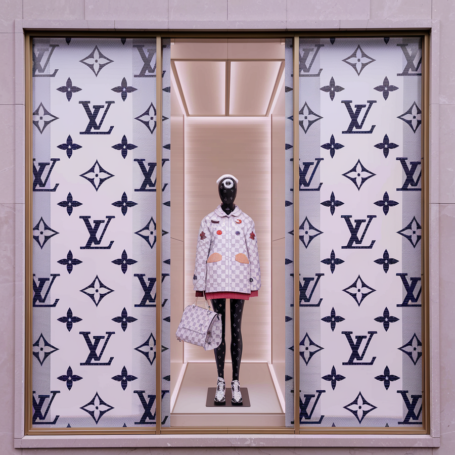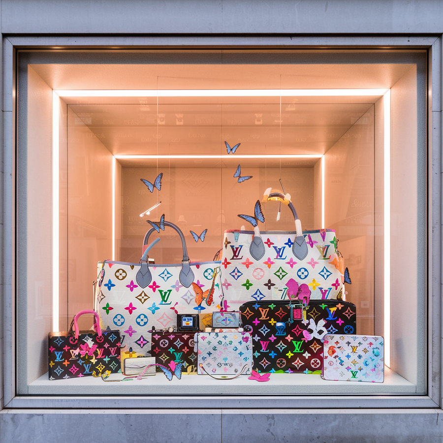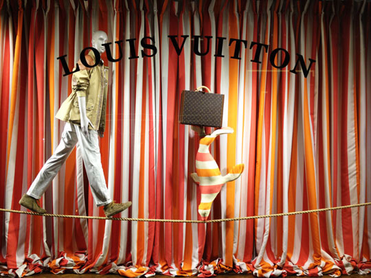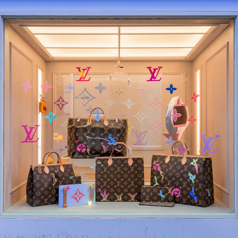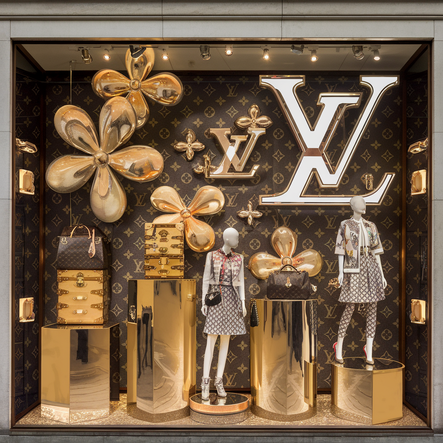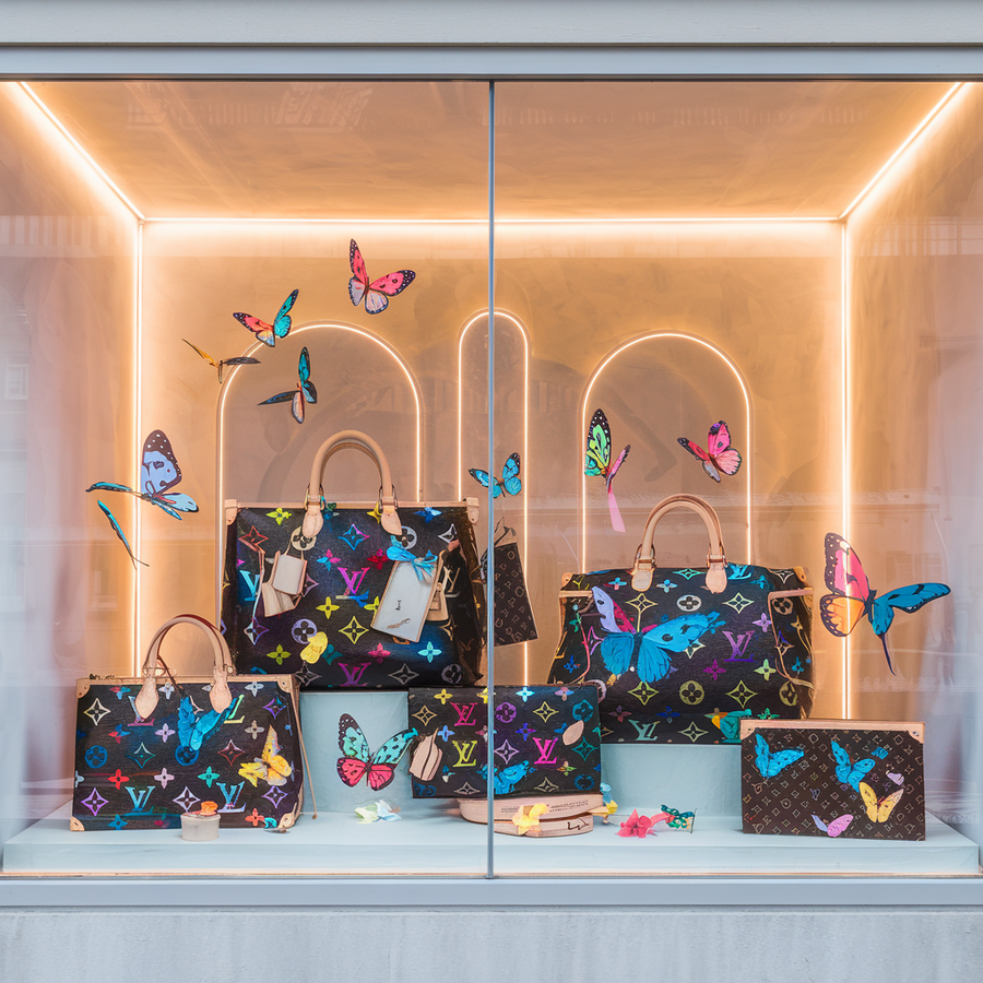 Витрины часто становятся площадкой для художественных инсталляций и коллабораций с известными дизайнерами и художниками. Например, в 2012 году бренд сотрудничал с японской художницей Яёи Кусамой, чьи узнаваемые узоры в горошек украсили витрины и коллекции Louis Vuitton.