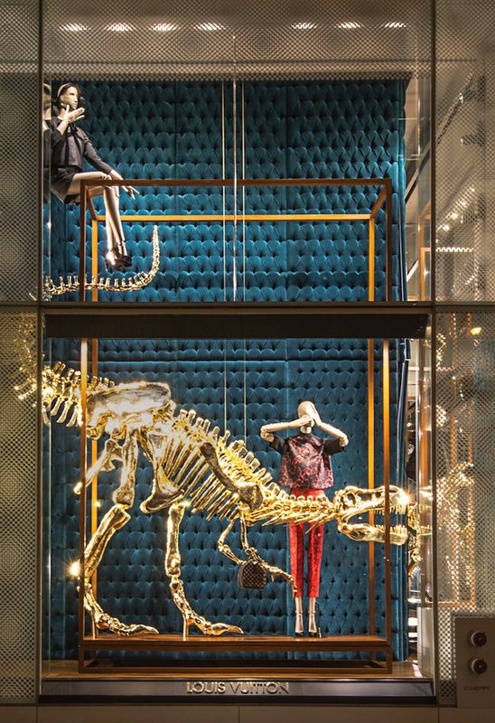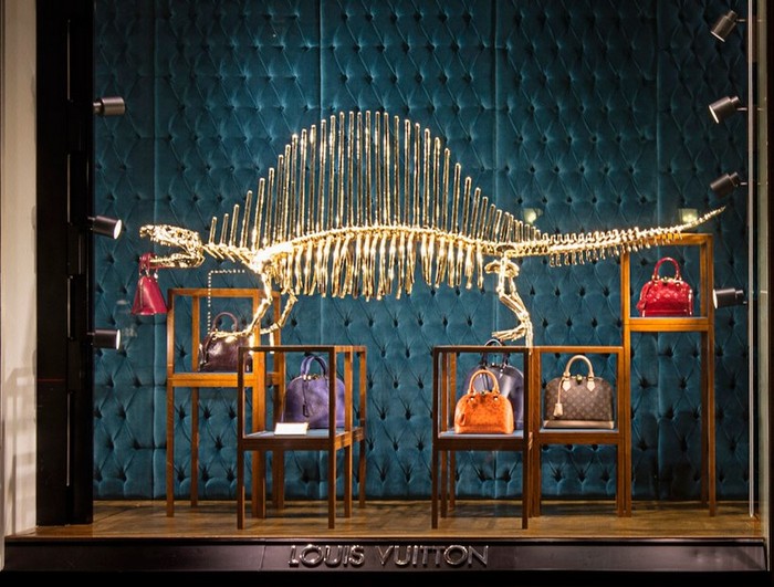 Витрины со скелетами динозавров появились в 2013 году и стали культовыми. В них золотые скелеты динозавров «держали» фирменные сумки и аксессуары бренда. Эта идея символизировала связь прошлого и настоящего, вечность стиля, а также играла на контрасте грубой природы и роскоши. Витрины установили в бутиках на Пятой авеню в Нью-Йорке, в Париже и Лондоне, и они быстро стали хитом соцсетей.