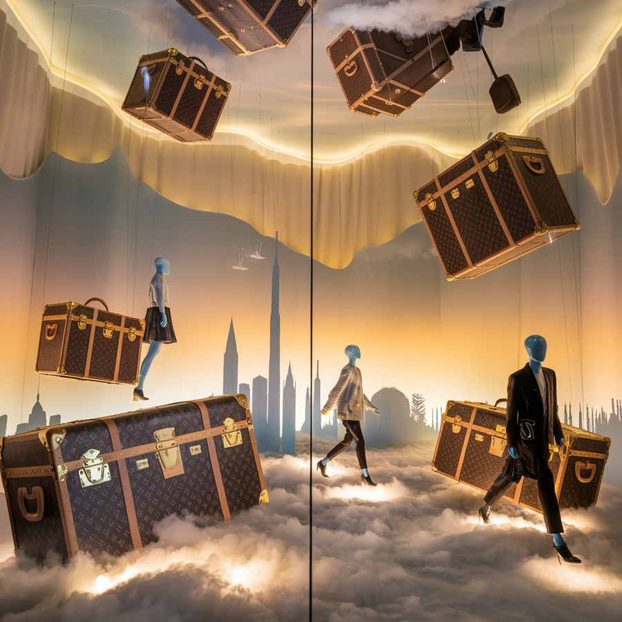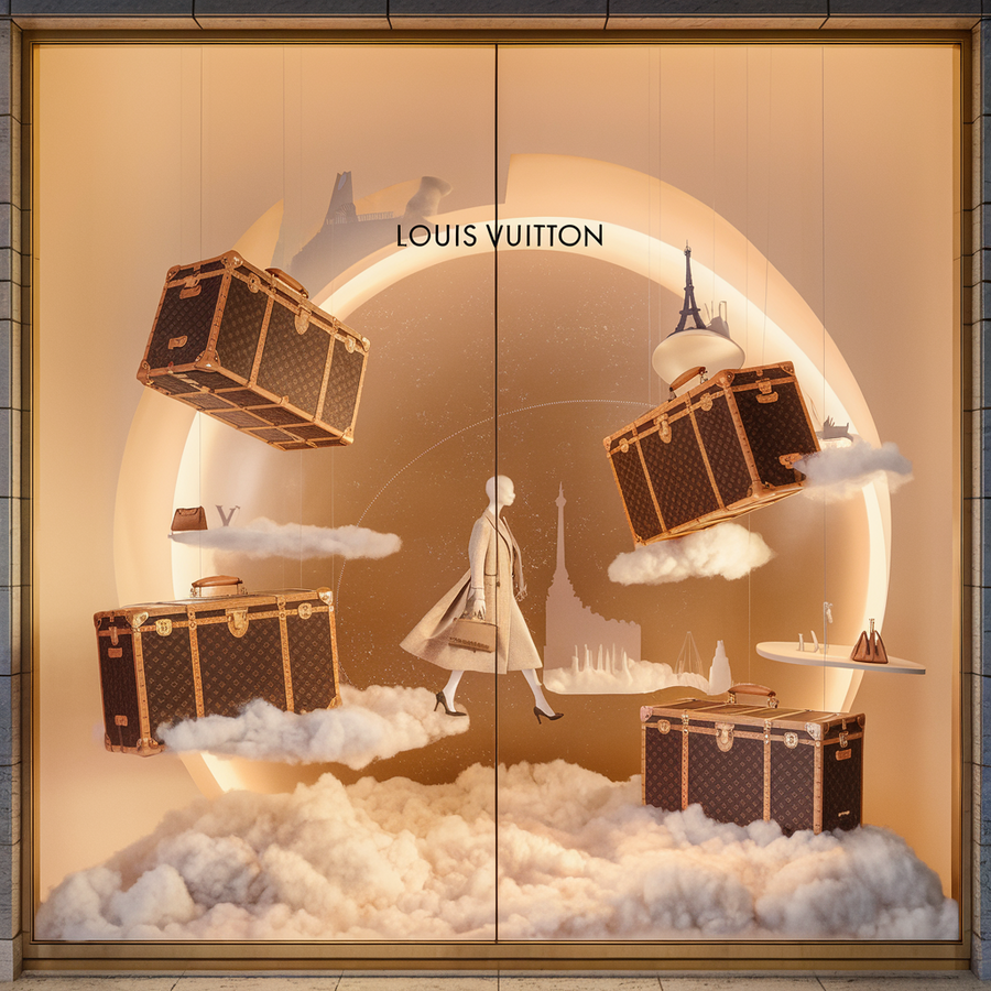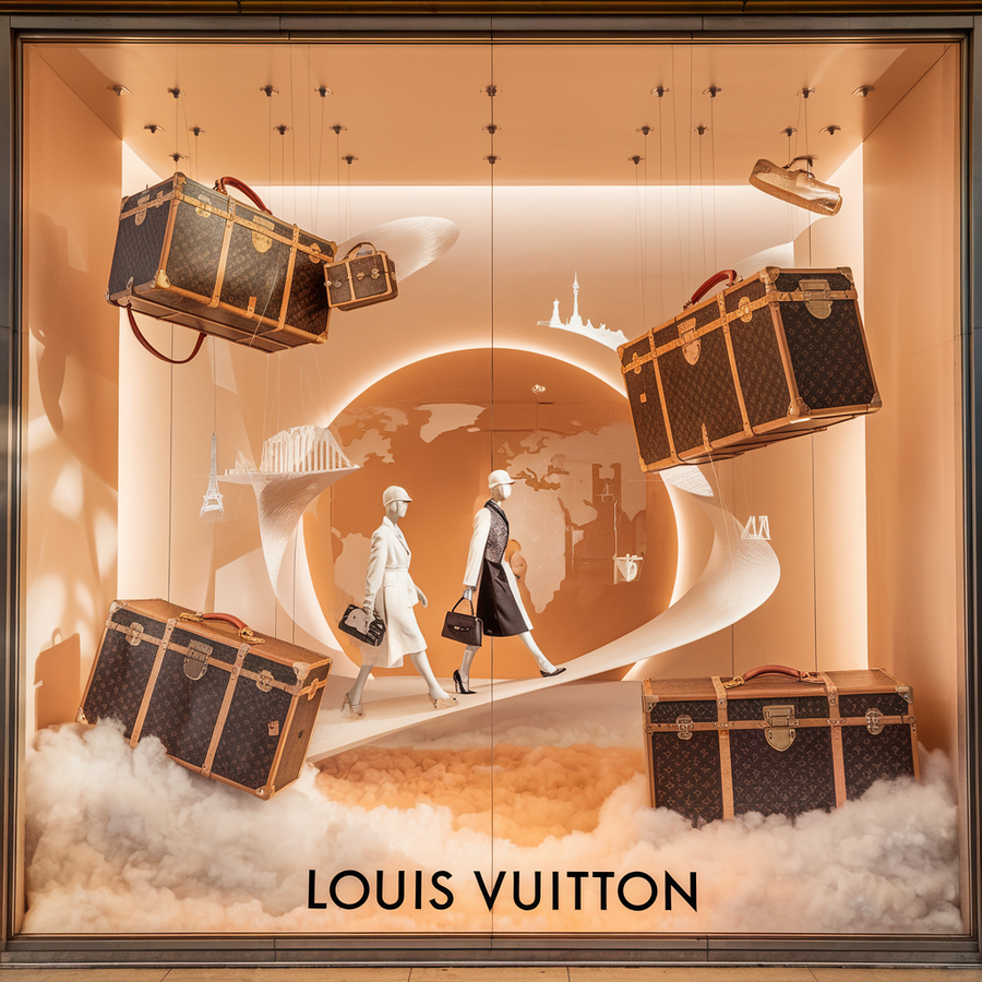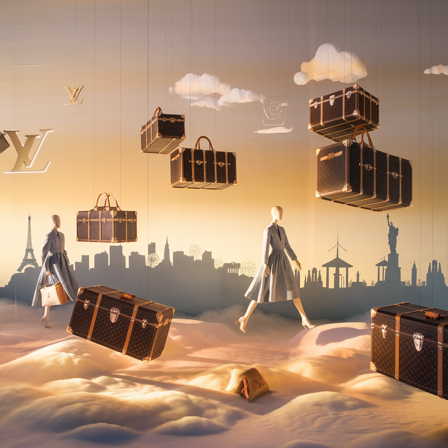 Смысл: Напомнить о корнях Louis Vuitton как бренда для путешественников, но с налётом мечты и свободы.