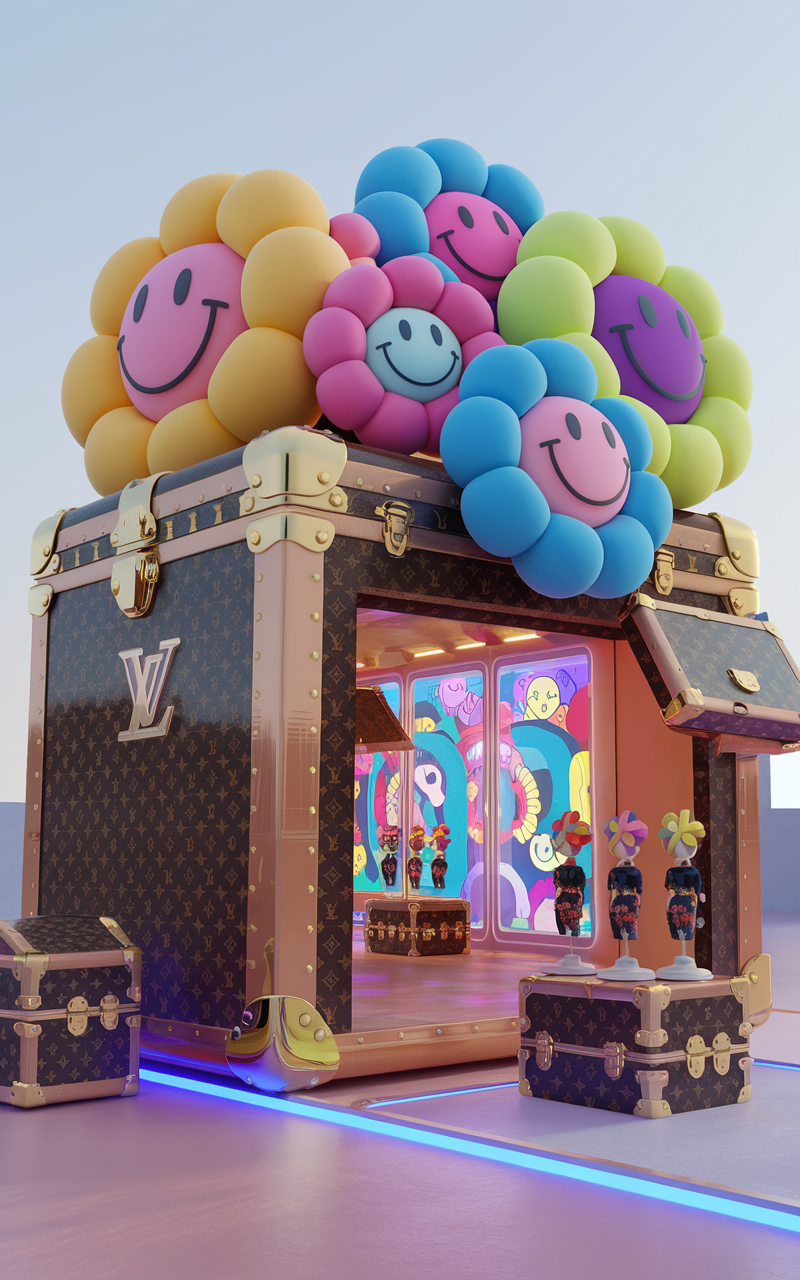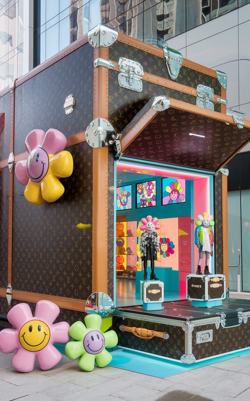 Это путешествие сквозь пространство, где классические сундуки Louis Vuitton попадают в мир фантазий Такаши Мураками.