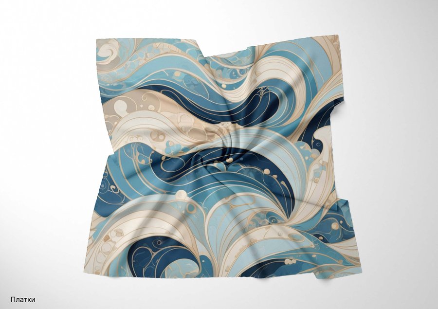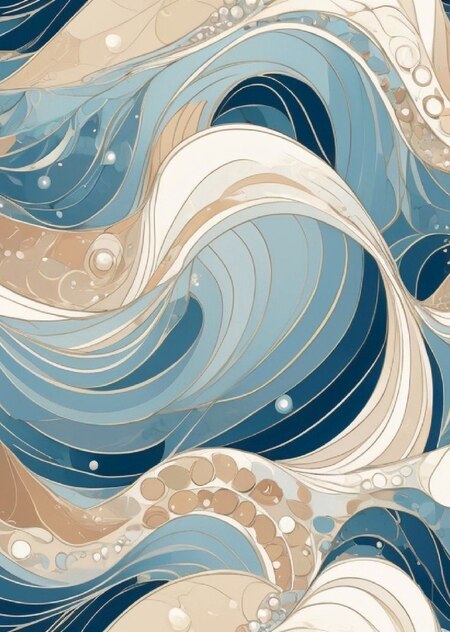 Промт: make an abstract patterns based on legend about pearl in sea style, use blue and beige colors