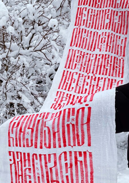 The object of the project was a towel — a towel made of hamlet canvas, which is the object of popular culture and the popular creativity of the Slavs — and is often given semantics of the way, the connections, the family, and the marriage. A popular song about a failed marriage is written in a pencil form.