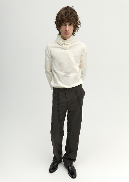 Образ показывает ошибку производства не как брак, а как выразительный знак. Автор разрушает «идеальность», делая видимыми следы работы и случайности, создавая симбиоз между нормой и сбоем. Принцип — намеренно нарушать симметрию, чистоту и ровность, оставляя ощущение незавершённости и вмешательства.