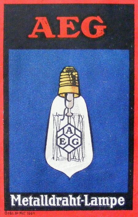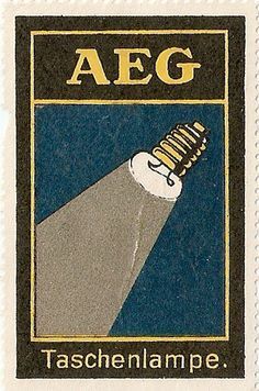 Слева: Петер Беренс. Рекламный плакат лампы накаливания AEG. 1907 г. Справа: Автор неизвестен. Почтовая марка. Дата неизвестна.