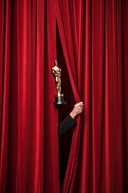 Для выбора цветовой палитры данного проекта я создала коллаж для вдохновения и опиралась на цвета, которые ассоциируются у меня с церемонией Оскар — бордовый, чёрный и золотой.