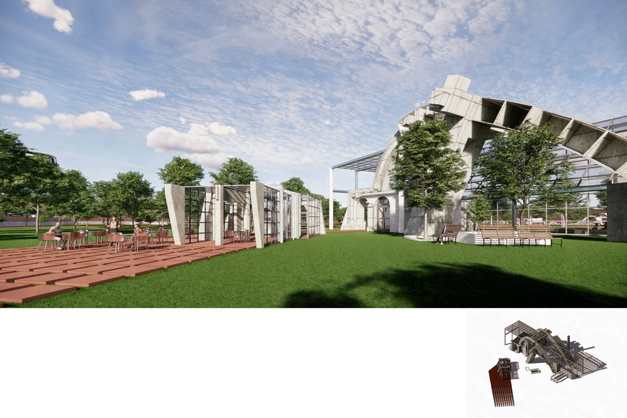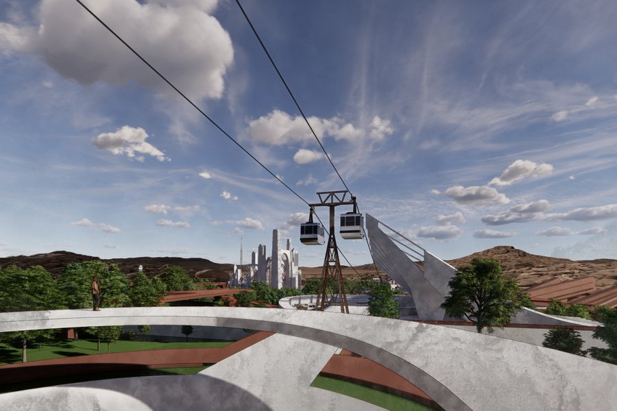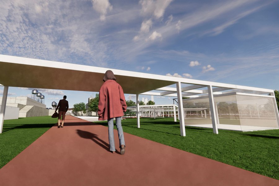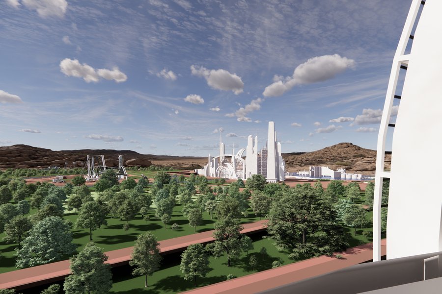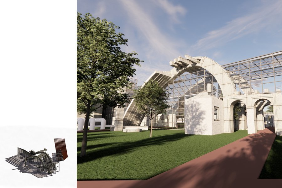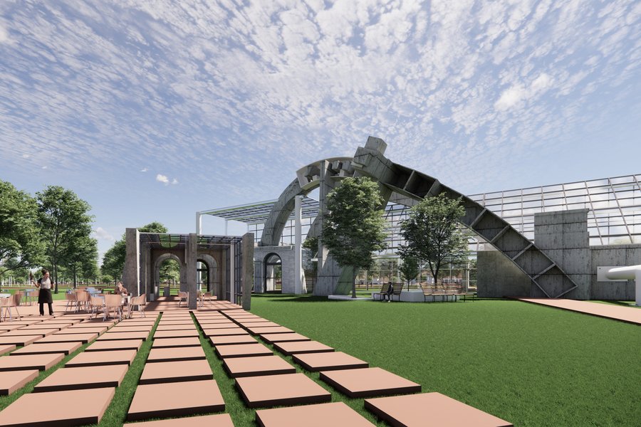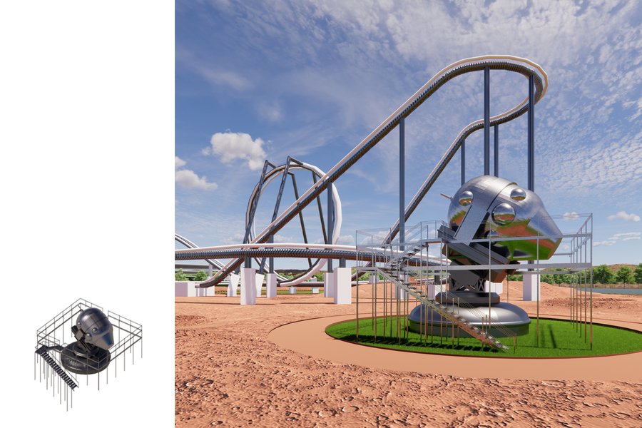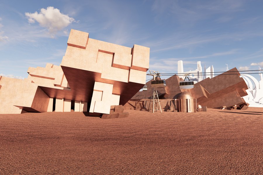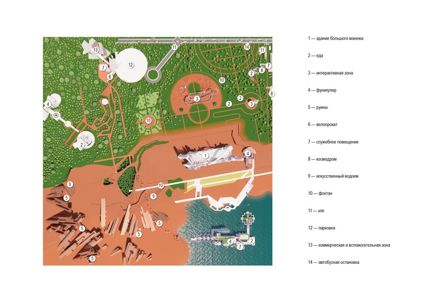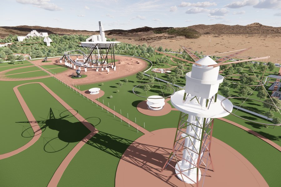 Парк Экстер — это фантастический ландшафт на стыке Земли и Марса, вдохновлённый авангардной эстетикой Александры Экстер и фильмом «Аэлита». Три зоны — Биосфера, марсианские пейзажи и водная база — объединяют природу, архитектуру и театральную фантазию в пространство прогулки, созерцания и игры.