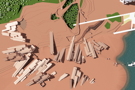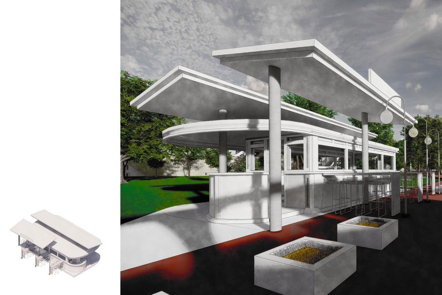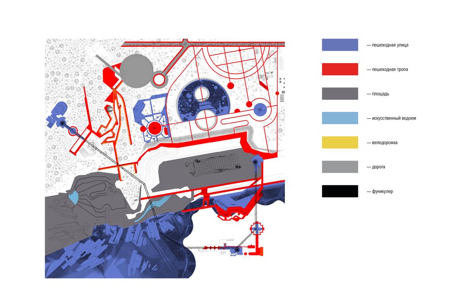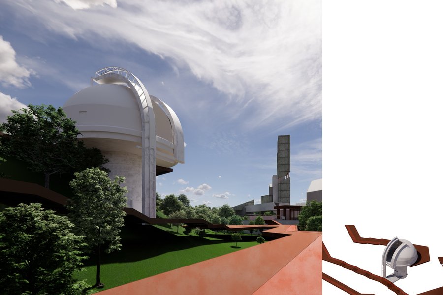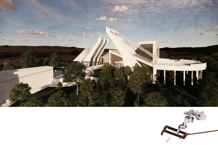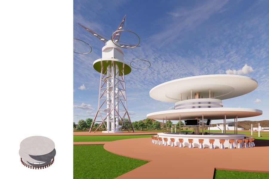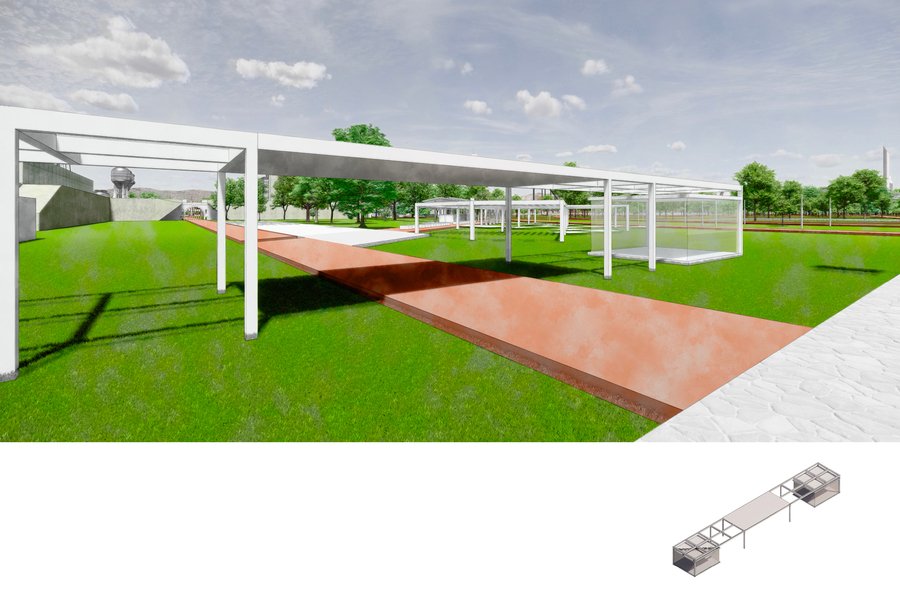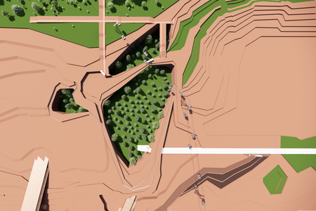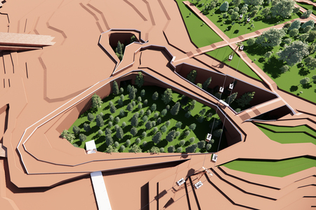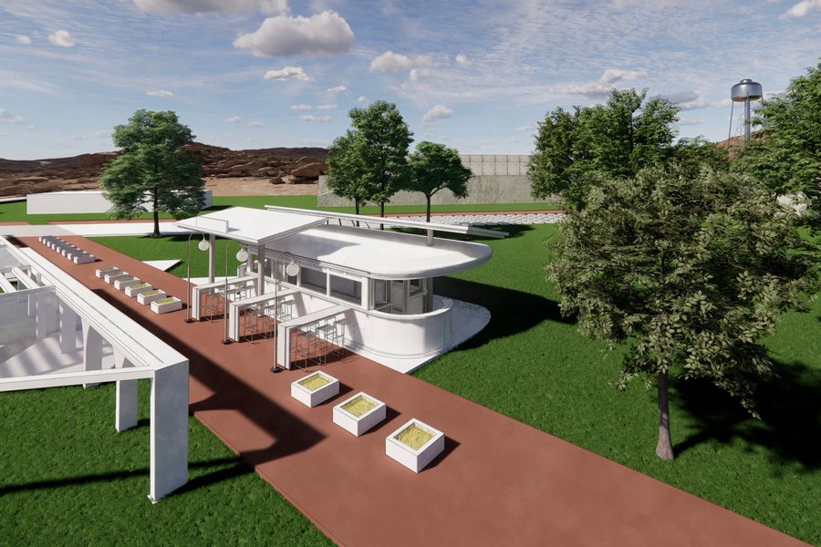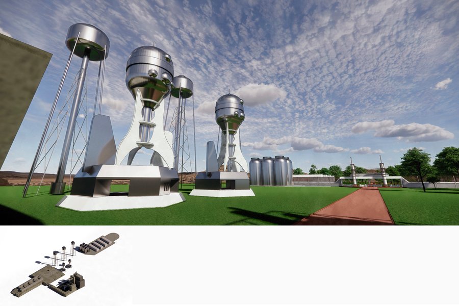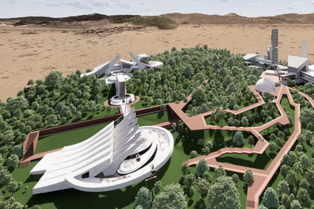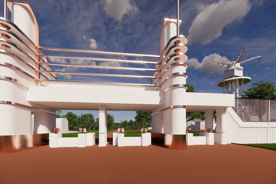 Парк Экстер — это фантастический ландшафт на стыке Земли и Марса, вдохновлённый авангардной эстетикой Александры Экстер и фильмом «Аэлита». Три зоны — Биосфера, марсианские пейзажи и водная база — объединяют природу, архитектуру и театральную фантазию в пространство прогулки, созерцания и игры.