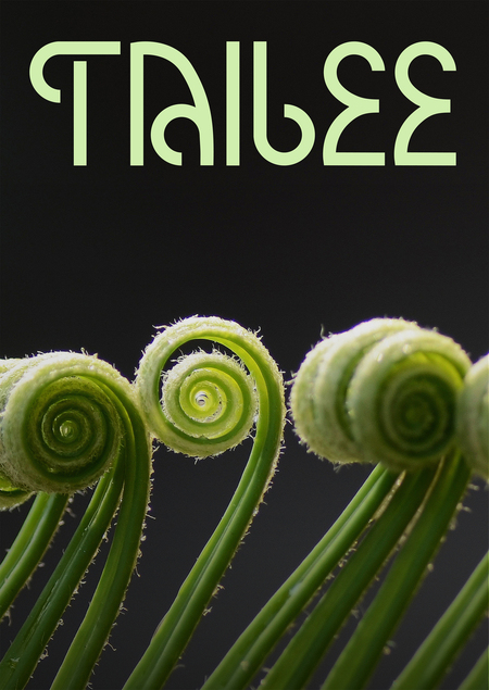 на создание акцидентного шрифта tailee я была вдохновлена органическими природными формами, которые встречаются как в растительном, так и животном мире. Он состоит из прямых и округлых линий, которые повторяют завиток у соцветий или изгиб хвоста у различных животных.