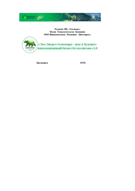 «Эко Энерго технопарк — шаг в будущее: инновационный бизнес без полигона».1